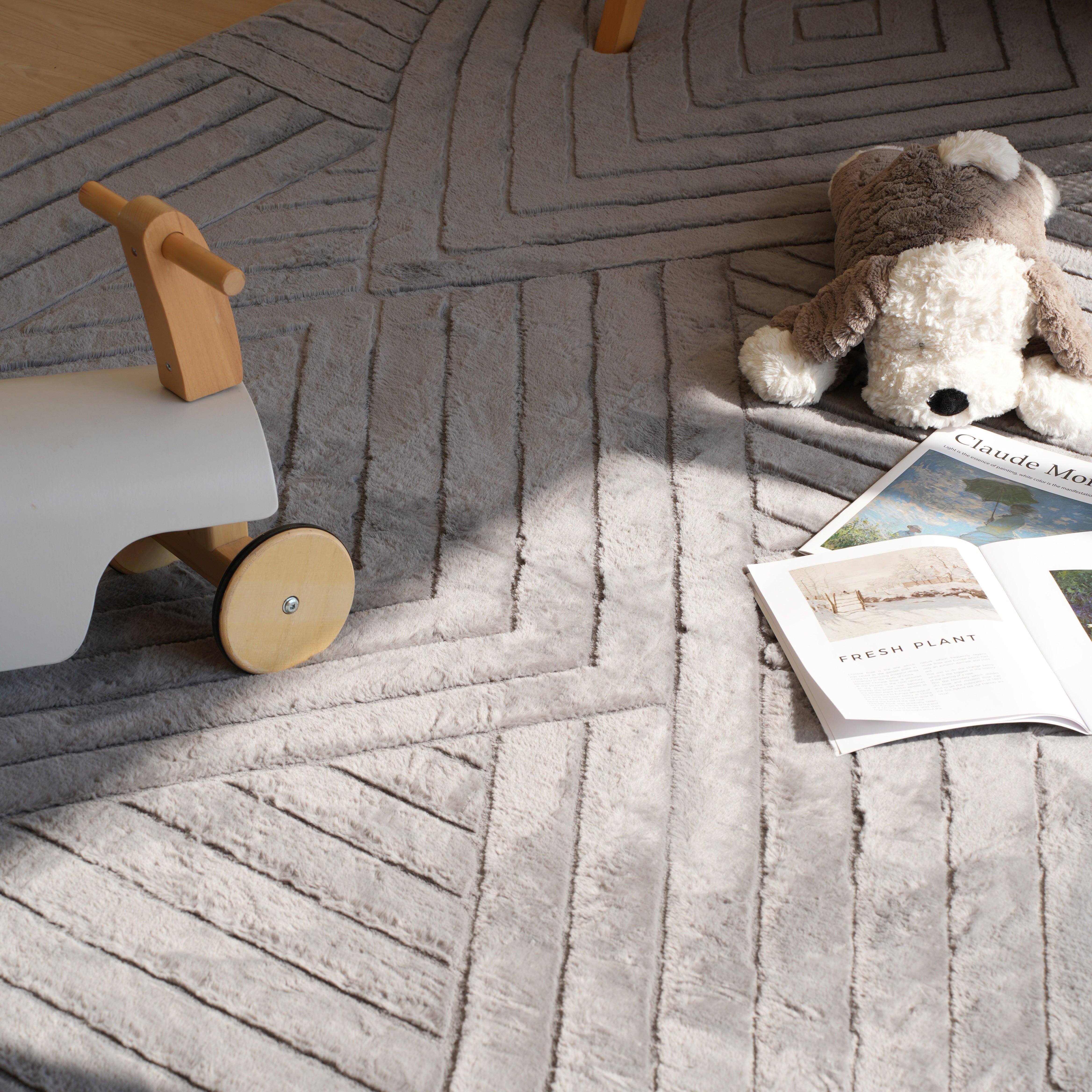 Plush faux-rabbit fur with elevated jacquard texture. Warm, cloud-soft, and visually refined, adding depth and elegance to play areas and living spaces alike.