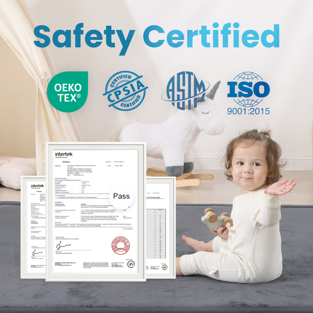 【Safe ,Certified for Babies】Certified by OEKO-TEX fabric standards and tested to meet CPSIA and ASTM requirements, this kids play mat is free from harmful substances.